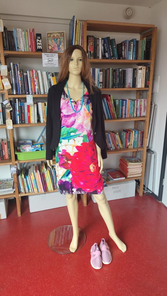 Deze maand maak je kans op een elegante en vrolijke outfit die direct in het oog springt. De basis is een jurkje met een speelse bloemenprint in warme rood- en roze tinten. Daaroverheen combineren we een zwarte blazer, waardoor de look zowel chic als praktisch wordt – ideaal voor een feestje, een dagje uit of een etentje.